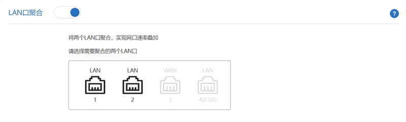 有线接口方面,则是一个2.5G网口+3个千兆网口。根据路由管理界面来看,这一代支持LAN口聚合,并且修复了此前2.5G口和千兆口公用的BUG。