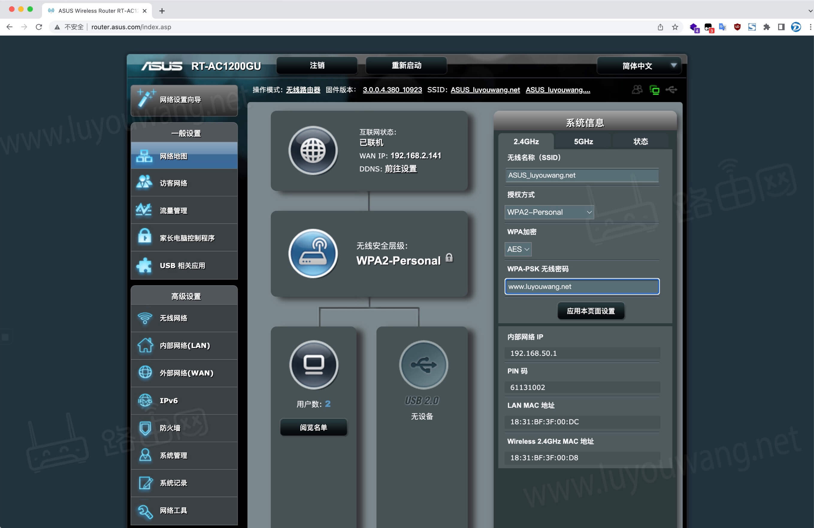 华硕路由器默认登录网址:http://router.asus.com