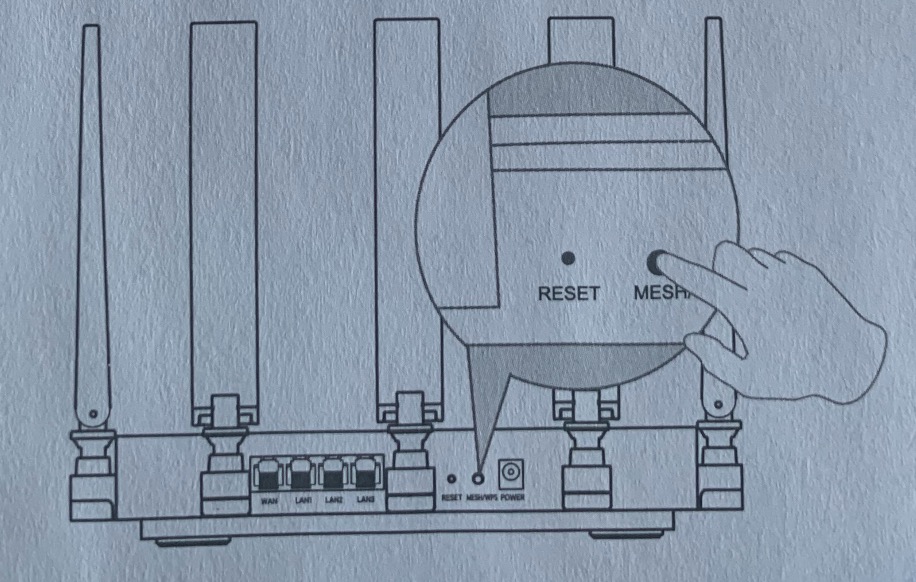 2.分别短按网关的WPS按键以及路由器MESH/WPS按键,指示灯变为绿色闪烁。待路由器指示灯变为绿色常亮,则完成MESH组网。